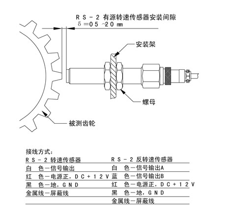 RS-2F为双路测速传感器,配以键槽或齿轮能输出两路有相位差地幅度稳定的信号,既具有普通的测速功能,又具有判向功能,能分辨齿轮、齿条的运动方向。